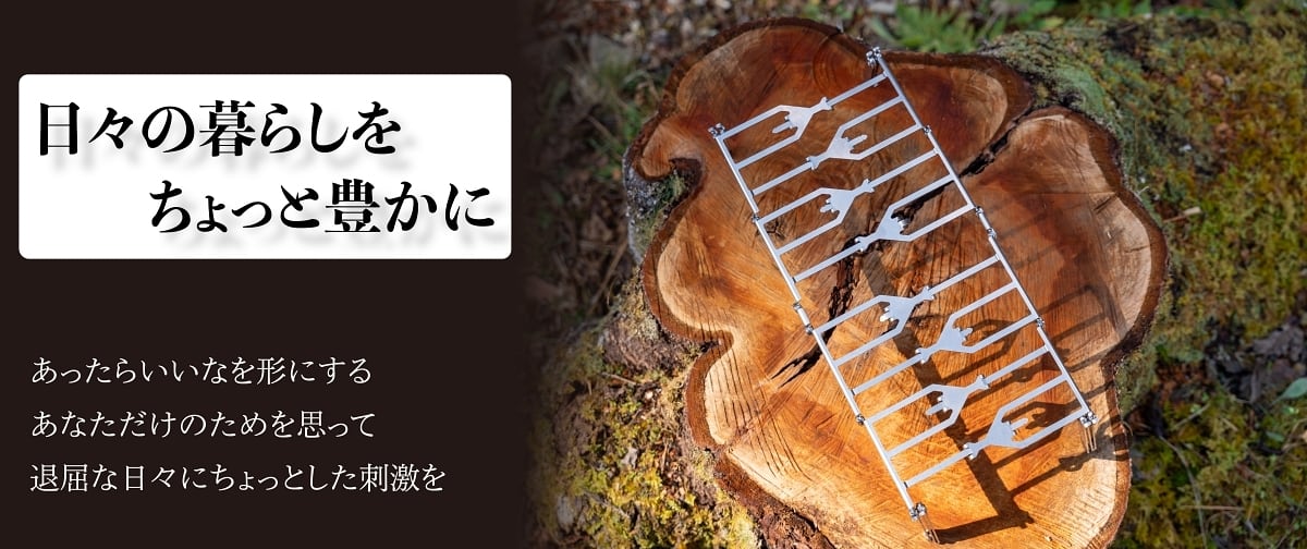 公式オンラインショップ限定10%OFF! 進化する焚き火台は、荷物を軽量化したいキャンパーにぴったりの焚き火台です。進化する五徳に追加のアタッチメントをはめることで焚火台として使用することができます。手のひらサイズのコンパクトな焚火台で、ソロキャンパーやバイク、徒歩キャンパーにおすすめです。組み立て前からは想像つかない個性的な焚火台で他のキャンパーに差をつけろ! ■ 仕様 - 内容: 進化する焚き五徳 × 2、進化する焚き火台アタッチメント4枚組 × 1 - サイズ: 展開時 400mm x 240mm x 120mm、収納時 290mm x 110mm x 40mm - 耐荷重: 2kg - 重量: 合計1000g ■ 素材/製造国 - 素材: ステンレススチール - 製造国: 日本 ■ お手入れ/取り扱い注意事項 - 使用後は、冷却してから清掃を行ってください。 - 強い風や悪天候時は使用を控え、安全な場所に設置してください。 ■ 発送・注文に関する情報や注意事項 - 通常、注文から3営業日以内に発送いたします。 - 商品は丁寧に梱包してお届けしますので、安心してお待ちください。 ■ その他の情報や注意事項 - 本製品は焚き火台としての用途に特化しており、他の用途での使用はお控えください。 - 万が一、初期不良品がございましたら、お手数をおかけしますがお問い合わせフォームよりご連絡ください。製品の状態や使用状況等確認の上、新品とお取替えいたします。 その他ご不明点やご質問がありましたら、お問い合わせは当ショップの「お問い合わせ」ページからお気軽にご連絡ください。